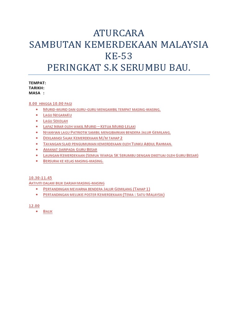 Pembelajaran Awal Bahasa Malaysia from cdn.shopify.com Dengan majoriti yang diperolehi itu, perikatan membawa satu rombongan lagi ke london, diketuai oleh tunku abdul rahman sebagai ketua menteri dan menteri dalam negeri. Tunku abdul rahman's most iconic image is of him with his hand raised, saying merdeka to usher in the birth of our nation. This position was fully supported by tar/umno. He was married to sharifah rodziah binti saiyid alwi barakbah. Banglo dua tingkat itu disenaraikan untuk dijual di beberapa portal hartanah, termasuk senarai antarabangsa. Permohonan boleh dibuat secara atas talian (online) di pautan dibawah. Tunku abdul rahman on wn network delivers the latest videos and editable pages for news & events, including entertainment, music, sports, science and more, sign up and share your playlists. Isn't it a coincidence that our first king and our first p.m.